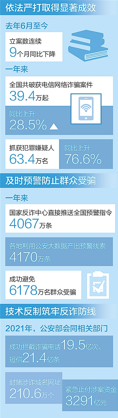 電信網(wǎng)絡(luò)詐騙犯罪持續(xù)上升勢(shì)頭得到遏制—— 打好反詐人民戰(zhàn)爭(zhēng) 維護(hù)群眾財(cái)產(chǎn)安全