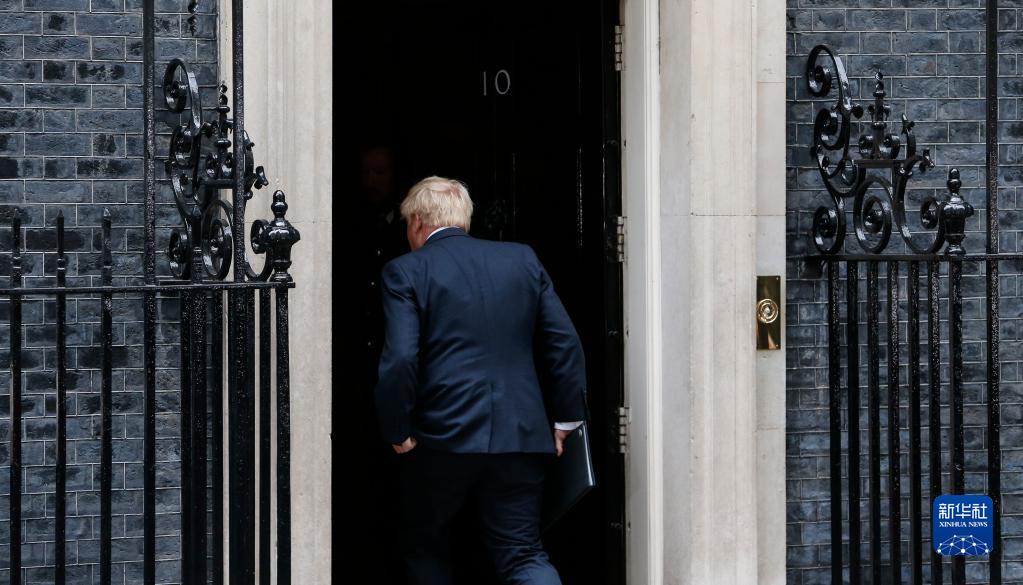 7月7日,英國首相鮑里斯·約翰遜在倫敦唐寧街10號門前發(fā)表講話后返回室內(nèi)。 新華社記者 李穎 攝