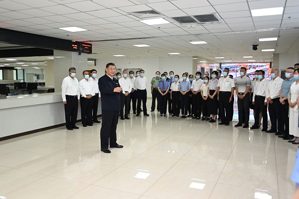 7月12日下午,習(xí)近平總書記來到烏魯木齊國際陸港區(qū),聽取整體情況介紹,通過實時畫面察看中歐班列(烏魯木齊)集結(jié)中心各功能區(qū)和阿拉山口口岸、霍爾果斯口岸現(xiàn)場作業(yè)情況,并同工作人員及現(xiàn)場辦事人員親切交流。