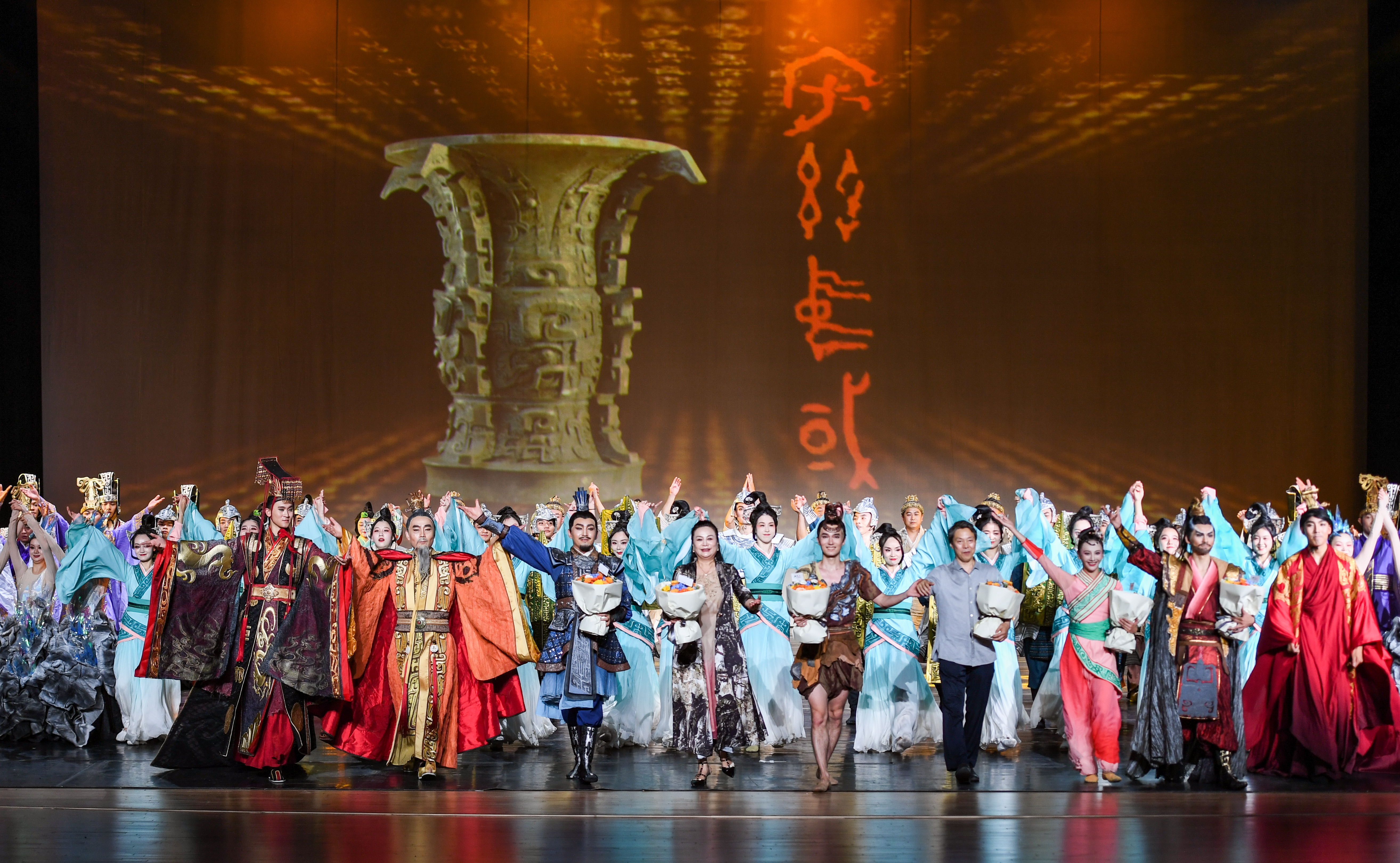 演員在第八屆絲綢之路國際藝術(shù)節(jié)閉幕式上表演舞劇《青銅》(9月23日攝)。新華社發(fā)(鄒競一 攝)