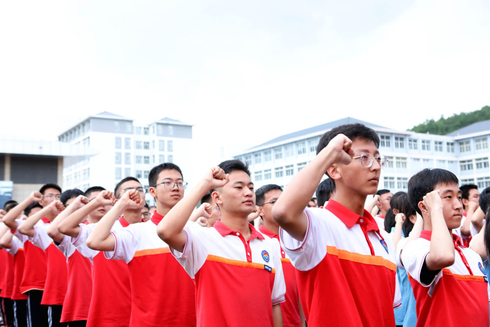 6月8日,在延安市延安中學棗園校區(qū),即將升入高三年級的學生參加新學期啟動儀式。新華社發(fā)(楊旭春 攝)