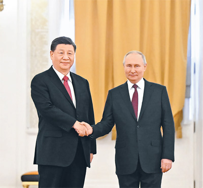 本報莫斯科3月21日電(記者杜尚澤、曲頌)當?shù)貢r間3月21日下午,國家主席習近平在莫斯科克里姆林宮同俄羅斯總統(tǒng)普京舉行會談。兩國元首就中俄關(guān)系及共同關(guān)心的重大國際和地區(qū)問題進行了真摯友好、富有成果的會談,達成許多新的重要共識。雙方一致同意,本著睦鄰友好、合作共贏原則推進各領(lǐng)域交往合作,深化新時代全面戰(zhàn)略協(xié)作伙伴關(guān)系。