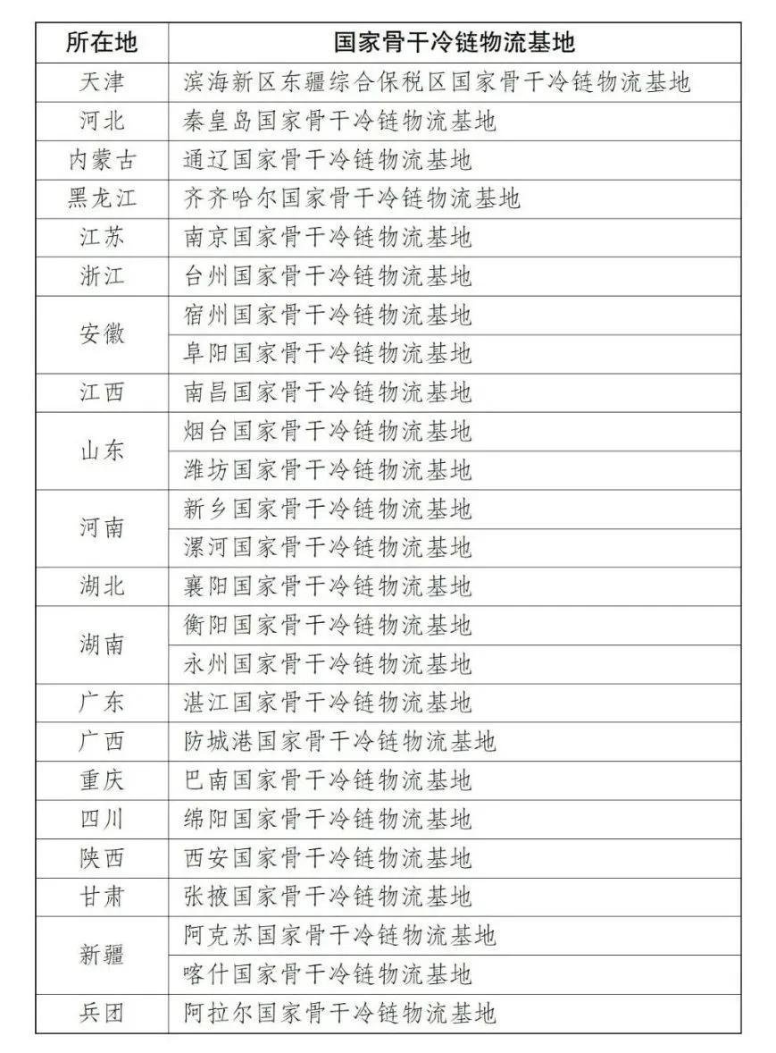 2023年國(guó)家骨干冷鏈物流基地建設(shè)名單(共25個(gè),排名不分先后)