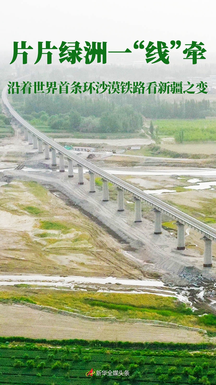 新疆,塔克拉瑪干,沙海茫茫。倏然,一列火車駛過(guò)綠植掩襯下的鐵軌,打破周遭寂靜。