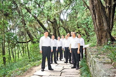 7月25日至27日,中共中央總書記、國家主席、中央軍委主席習近平在四川考察。這是25日下午,習近平在廣元市劍閣縣翠云廊考察。新華社記者 謝環(huán)馳攝