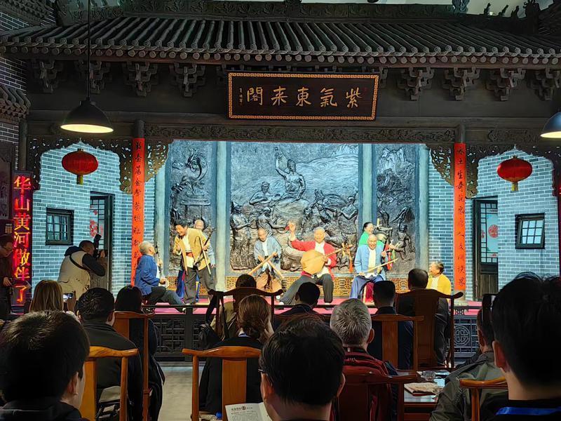 “將令一聲震山川,人披衣甲馬上鞍。大小兒郎齊吶喊,催動人馬到陣前……”10月12日,在渭南市非物質(zhì)文化遺產(chǎn)展示傳習(xí)館,華陰老腔《將令一聲震山川》一亮相,便吸引了考察團成員的注意力。