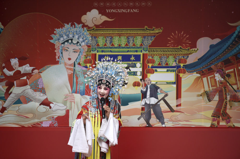 ▲9月12日,西安市新城區(qū)“遇見城墻·非遺韻”非遺集市上,表演者在進(jìn)行秦腔演出。新華社記者 劉瀟 攝