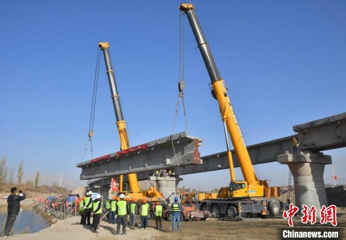 中新網(wǎng)新疆圖木舒克11月21日電 (高磊 陳明珠 徐凡) 11月21日,隨著夏可河跨河大橋最后一片T梁合攏,標(biāo)志著新疆生產(chǎn)建設(shè)兵團第三師圖木舒克市達(dá)坂山鐵路專用線項目路基工程全線貫通。
