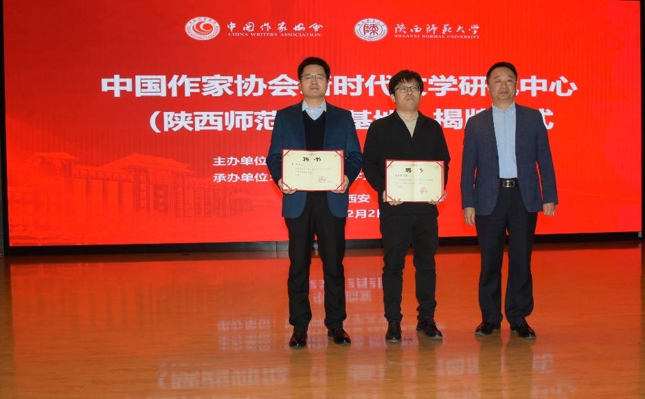 12月2日,中國作家協(xié)會新時代文學(xué)研究中心(陜西師范大學(xué)基地)揭牌儀式暨新時代小說論壇在西安舉行。中國作家協(xié)會黨組成員、副主席、書記處書記吳義勤,陜西省委宣傳部副部長武勇超,陜西省作家協(xié)會主席賈平凹,陜西師范大學(xué)黨委副書記盧勝利出席會議并共同為中國作協(xié)新時代文學(xué)研究中心(陜西師范大學(xué)基地)揭牌。中國作家出版集團黨委副書記、管委會副主任宋向偉宣讀中國作家協(xié)會關(guān)于成立中國作協(xié)新時代文學(xué)研究中心(陜西師范大學(xué)基地)的批復(fù)。陜西省作家協(xié)會黨組成員、副主席安廣文,陜西省委宣傳部文藝處副處長王國權(quán),陜西文學(xué)院常務(wù)副院長韓霽虹,以及白燁、陳曉明、張清華、郜元寶、李洱、吳俊、趙學(xué)勇、賀仲明、季進、張燕玲、李朝全、李繼凱、楊爭光、何平、李國平、周燕芬、弋舟、穆濤、劉大先、劉艷、金理、叢治辰、張麗軍、曾攀、張元珂、崔慶蕾、郝敬波、宋嵩、楊輝、行超、李躍力、田振華、范伊寧、鐘海波、張自春、馮超、陳誠等30余位專家學(xué)者參會。儀式上,盧勝利代表陜西師范大學(xué)聘任《中國當(dāng)代文學(xué)研究》副主編崔慶蕾、陜西師范大學(xué)文學(xué)院教授楊輝為研究中心主任。會議由陜西師范大學(xué)文學(xué)院院長蘇仲樂主持。