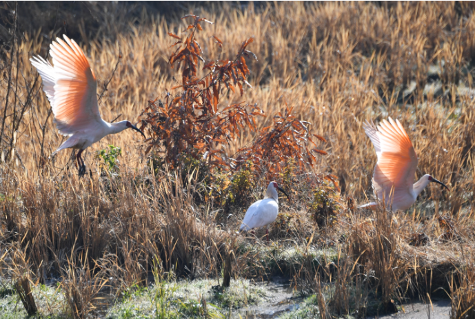 “朱鹮這種鳥挺特別,它不一定待在沒(méi)有人煙的深山老林,反而喜歡與人‘共生’,棲息在稻田周邊,因?yàn)檫@些地方食物多、天敵少?!必?fù)責(zé)“朱鹮小村”整體運(yùn)營(yíng)工作的公司負(fù)責(zé)人曹信說(shuō)道。