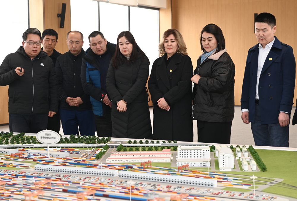 ?? 2月29日,來自西安愛菊集團(tuán)哈薩克斯坦工廠的員工代表參觀了解中歐班列西安國際港站。新華社記者 李一博 攝