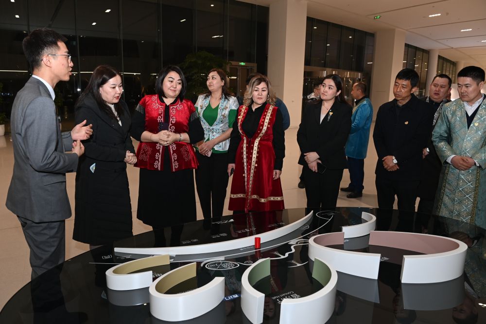?? 2月29日,來自西安愛菊集團(tuán)哈薩克斯坦工廠的員工代表在位于西安浐灞國際港的長安樂·一帶一路文化藝術(shù)中心參觀。新華社記者 李一博 攝