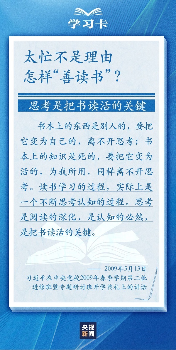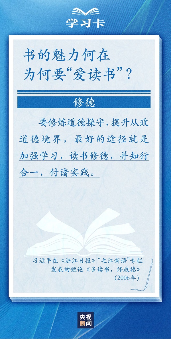 今天(4月23日)是世界讀書日。習近平曾多次講述和書籍的不解之緣,分享讀書學習的感悟,倡導(dǎo)“愛讀書、讀好書、善讀書”。書的魅力何在,為何要“愛讀書”?如何能“選好書”?怎樣“善讀書”?一起學習↓
