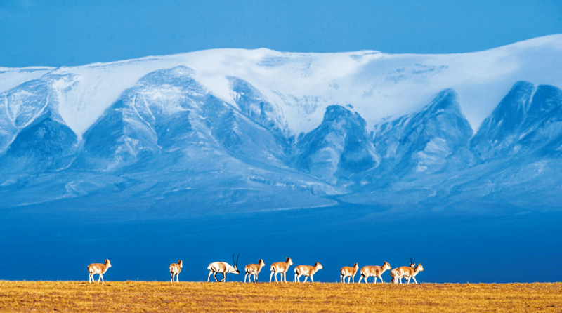 三江源是長(zhǎng)江、黃河、瀾滄江發(fā)源地,被譽(yù)為“中華水塔”,每年為中國(guó)18個(gè)省(區(qū)、市)和5個(gè)周邊國(guó)家提供近600億立方米的優(yōu)質(zhì)淡水。通過建設(shè)三江源國(guó)家公園,有力保護(hù)了冰川雪山、草原濕地等高寒生態(tài)系統(tǒng),高寒草原草甸綜合植被蓋度穩(wěn)步提高,生態(tài)系統(tǒng)穩(wěn)定性不斷增強(qiáng),生態(tài)功能持續(xù)提升,被譽(yù)為“高原精靈”的珍稀瀕危野生動(dòng)物藏羚羊數(shù)量穩(wěn)定增長(zhǎng)。圖為在三江源國(guó)家公園拍攝的藏羚羊。 三江源國(guó)家公園管理局供圖 索南/攝