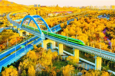 近年來(lái),新疆鐵路建設(shè)逐年加快,已從最初的一字形鐵路發(fā)展到跨越三山兩盆的全新路網(wǎng)布局。圖為一列復(fù)興號(hào)列車(chē)駛過(guò)烏魯木齊市燕兒窩段。蔡增樂(lè)攝/光明圖片