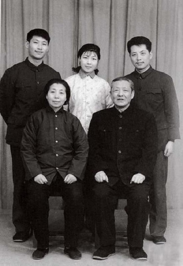 1975年,習仲勛和齊心與兒女在洛陽紅旗照相館合影。后排左起:兒子習近平、女兒習安安、女婿吳龍。來源:《習仲勛畫傳》