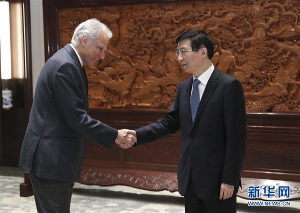 在會見德維爾潘時,王滬寧表示,中方始終從戰(zhàn)略高度重視發(fā)展中法和中歐關(guān)系,雙方應該共同努力促進全球互聯(lián)網(wǎng)治理向更加公正合理方向發(fā)展。