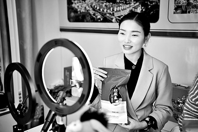 甘肅隴南電商達(dá)人梁倩娟在鏡頭前推銷特色產(chǎn)品。光明圖片