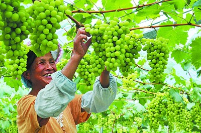 葡萄種植大戶望著豐收的葡萄樂得合不攏嘴。許增強(qiáng)攝/光明圖片