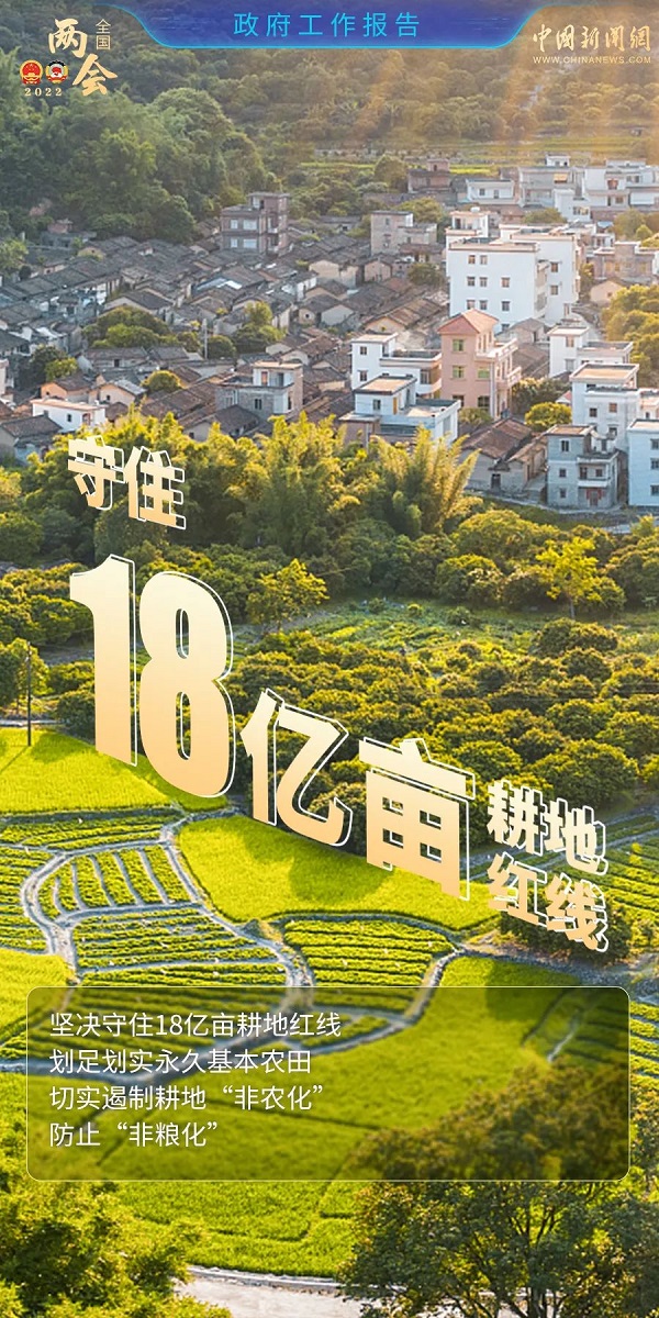 他談到,去年中國(guó)進(jìn)口糧食量還是較大,如不能有效提高國(guó)內(nèi)自給程度,帶來(lái)的糧食安全風(fēng)險(xiǎn)隱患不容忽視。為此,今年中央一號(hào)文件提出了一系列確?!岸死物埻搿钡摹坝埠恕贝胧ぷ鲌?bào)告中再次強(qiáng)調(diào)的“堅(jiān)決守住18億畝耕地紅線”就是重點(diǎn)之一。當(dāng)前中國(guó)仍處于城鎮(zhèn)化上升階段,保護(hù)耕地壓力依然較大,必須落實(shí)耕地保護(hù)建設(shè)硬措施。政府工作報(bào)告中提到的新建1億畝高標(biāo)準(zhǔn)農(nóng)田,也是今年中央一號(hào)文件中提出的目標(biāo)。這一目標(biāo)強(qiáng)調(diào)農(nóng)田除了面積有保障、質(zhì)量也要有保證??梢娬ぷ鲌?bào)告談及農(nóng)業(yè)的內(nèi)容,句句關(guān)鍵。