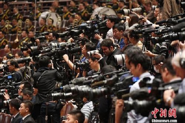 10月18日,中國共產(chǎn)黨第十九次全國代表大會(huì)在北京人民大會(huì)堂開幕。中外記者關(guān)注大會(huì)。 中新社記者 毛建軍 攝