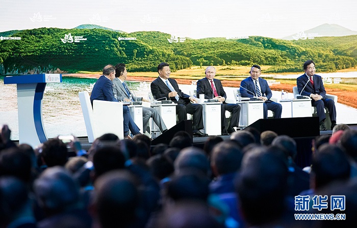 9月12日,第四屆東方經(jīng)濟(jì)論壇全會(huì)在符拉迪沃斯托克舉行。中國(guó)國(guó)家主席習(xí)近平出席并發(fā)表題為《共享遠(yuǎn)東發(fā)展新機(jī)遇 開創(chuàng)東北亞美好新未來(lái)》的致辭。 新華社記者鞠鵬攝