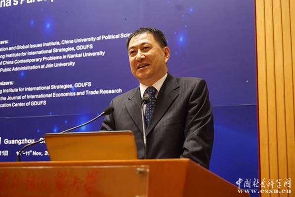 廣東外語外貿(mào)大學(xué)黨委書記、廣東國(guó)際戰(zhàn)略研究院常務(wù)副院長(zhǎng)隋廣軍致辭