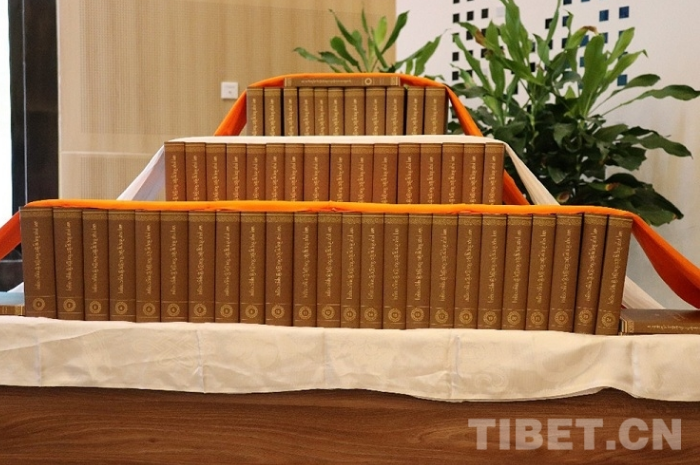 《中華大典?藏文卷》整理出版項(xiàng)目是國家“十二五”期間重點(diǎn)文化工程,《歷世班禪文集》系《中華大典?藏文卷》重要組成部分。2014年3月,在中國藏學(xué)研究中心主持舉行的《中華大典?藏文卷》學(xué)術(shù)委員會(huì)第二批項(xiàng)目評(píng)審會(huì)上,由西藏扎什倫布寺、青海師范大學(xué)聯(lián)合申報(bào)的《歷世班禪文集》編纂項(xiàng)目報(bào)告通過并列入《中華大典?藏文卷》項(xiàng)目。五年來,青海師范大學(xué)班禪研究院精心收集整理編排文稿,扎什倫布寺高僧審核???,經(jīng)中國藏學(xué)研究中心嚴(yán)格審核驗(yàn)收,中國藏學(xué)出版社審校、印刷、裝訂,高質(zhì)量完成了《歷世班禪文集》的出版工作。此套文集包括《克珠杰文集》12卷,《三至十世班禪文集》39卷,共51卷,37696頁,3400多萬字,400多幅插圖。