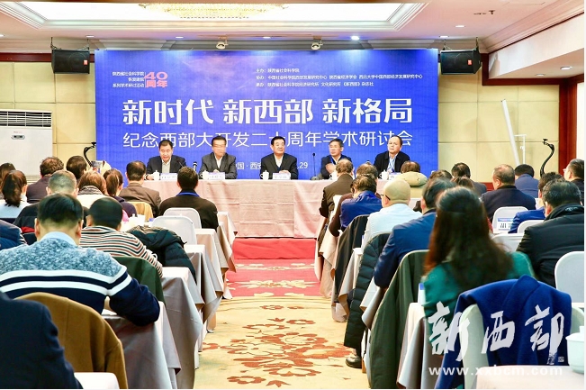 新西部網(wǎng)西安11月29日消息(記者楊旭民)2019年是國家實施西部大開發(fā)戰(zhàn)略二十周年。為了全面總結(jié)西部大開發(fā)二十年的偉大成就,并對西部大開發(fā)的未來發(fā)展提出對策建議,11月29日,陜西省社會科學院舉辦了“新時代 新西部 新格局——紀念西部大開發(fā)二十周年學術(shù)研討會”。研討會由陜西省社會科學院副院長白寬犁主持,陜西省社會科學院黨組書記、院長司曉宏,陜西省決策咨詢委員會副主任、省人大原副主任李金柱分別致辭,來自省內(nèi)外社科研究機構(gòu)、高等院校、黨校系統(tǒng)的專家學者80余人圍繞西部大開發(fā)二十年的回顧與展望,西部如何實現(xiàn)大保護、大開放與高質(zhì)量發(fā)展,發(fā)揮共建“一帶一路”引領(lǐng)帶動作用與西部陸海大通道建設(shè)等熱點話題進行了深入研討和交流。