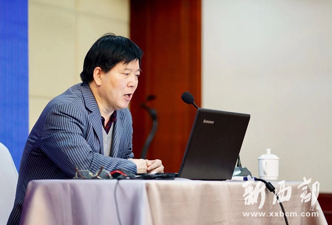 陜西省經(jīng)濟學會會長、西安郵電大學經(jīng)濟管理學院院長張鴻做題為《數(shù)字經(jīng)濟時代新西部高質(zhì)量發(fā)展思考》主旨發(fā)言