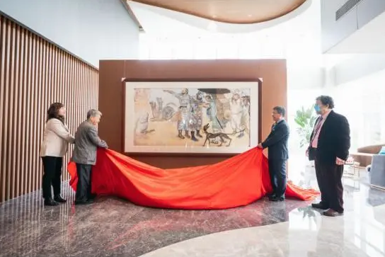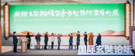 期間,西北大學(xué)校長郭立宏、中國社會科學(xué)院學(xué)部委員魏道儒為西北大學(xué)岳鈺教授的繪畫作品《玄奘問道帕米爾》揭幕。陜西省委外事辦公室二級巡視員李方軍、陜西省教育廳二級巡視員關(guān)荷、西北大學(xué)校長郭立宏等10位領(lǐng)導(dǎo)嘉賓共同啟動“國際玄奘論壇暨東方智慧繪畫藝術(shù)展”。