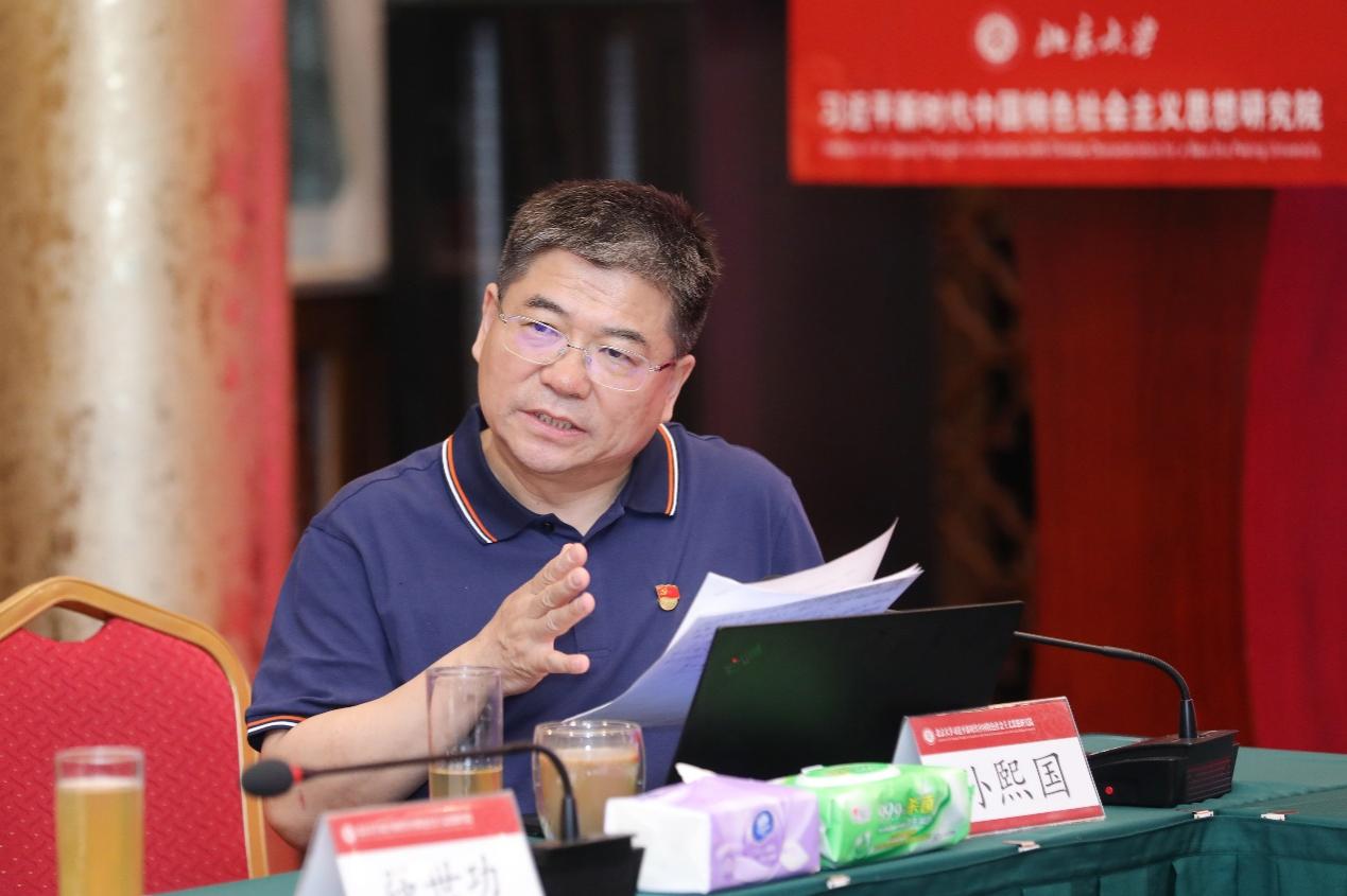 2021年7月3日,由北京大學(xué)習(xí)近平新時(shí)代中國(guó)特色社會(huì)主義思想研究院主辦的“慶祝中國(guó)共產(chǎn)黨成立一百周年學(xué)術(shù)研討會(huì)——深入學(xué)習(xí)貫徹習(xí)近平總書(shū)記‘七一’重要講話精神”在陳守仁國(guó)際研究中心中館舉行。來(lái)自中共中央黨校(國(guó)家行政學(xué)院)、教育部、中國(guó)社會(huì)科學(xué)院、北京大學(xué)、清華大學(xué)、中國(guó)人民大學(xué)、北京師范大學(xué)、北京市社會(huì)科學(xué)界聯(lián)合會(huì)、上海市委黨校等多家習(xí)近平新時(shí)代中國(guó)特色社會(huì)主義思想研究院(研究中心)的負(fù)責(zé)人和專家學(xué)者圍繞習(xí)近平總書(shū)記“七一”重要講話精神進(jìn)行了深入學(xué)習(xí)研討。北京大學(xué)黨委書(shū)記、習(xí)近平新時(shí)代中國(guó)特色社會(huì)主義思想研究院理事長(zhǎng)邱水平,中國(guó)社會(huì)科學(xué)院黨組成員姜輝,教育部高校發(fā)展社會(huì)科學(xué)研究中心主任王炳林,北京大學(xué)黨委常委、副校長(zhǎng)王博,北大社會(huì)科學(xué)部部長(zhǎng)強(qiáng)世功等出席。北京大學(xué)習(xí)近平新時(shí)代中國(guó)特色社會(huì)主義思想研究院全體教師和博士后研究人員參加。研討會(huì)由北京大學(xué)習(xí)近平新時(shí)代中國(guó)特色社會(huì)主義思想研究院院長(zhǎng)王浦劬教授主持。