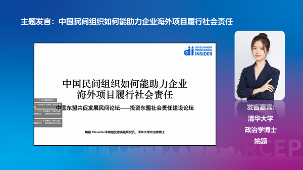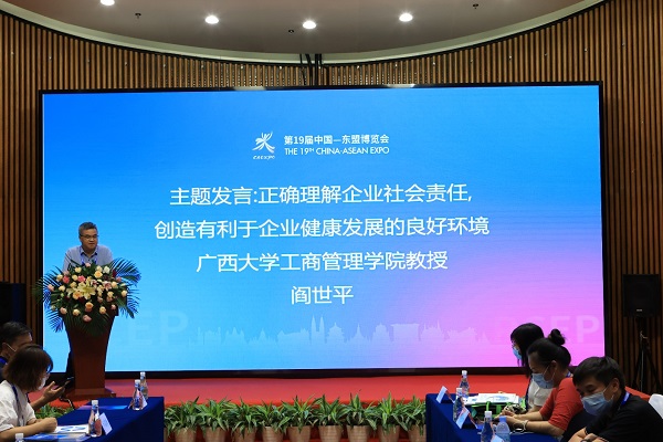 2022年9月18日,第19屆中國-東盟博覽會期間,中國國際民間組織合作促進會(以下簡稱中國民促會)聯(lián)合多家社會組織,在南寧舉辦了“中國-東盟共促發(fā)展民間論壇”,論壇主題為投資東盟社會責任建設。與會政府官員,專家學者,企業(yè)代表,社會組織代表,相聚南寧國際會展中心D103會議室,與線上嘉賓一起,就中資企業(yè)海外社會責任這一議題開展討論。