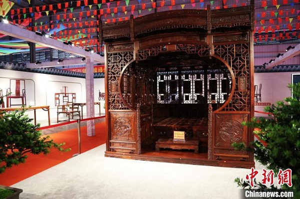 圖為展會(huì)上展出的實(shí)木家具。李洪健攝