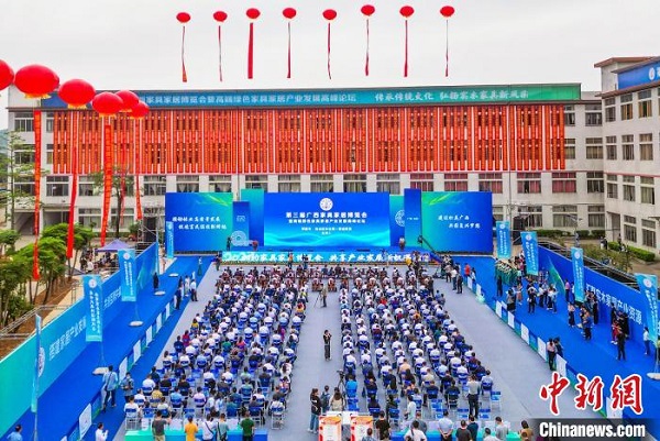 圖為第三屆廣西家具家居博覽會(huì)開(kāi)幕式現(xiàn)場(chǎng)。李洪健攝