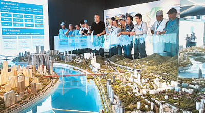 外媒嘉賓參觀重慶市規(guī)劃展覽館。