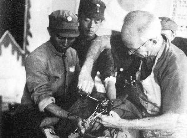 白求恩在給八路軍戰(zhàn)士做手術(shù)。資料圖