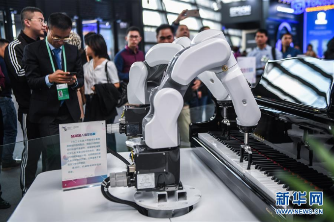 這是互聯(lián)網(wǎng)之光博覽會(huì)現(xiàn)場(chǎng)展示的能彈鋼琴的5G機(jī)器人(10月18日攝)。 新華社記者 徐昱 攝