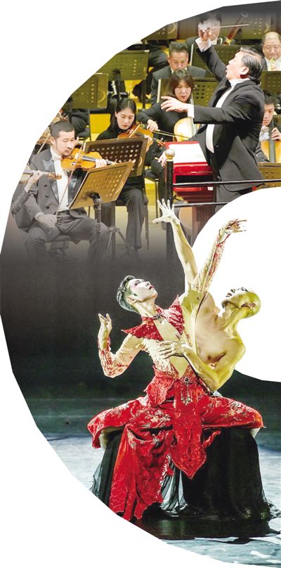 圖片從上至下依次為2019年北京國際音樂節(jié)閉幕音樂會,上海國際戲劇節(jié)舞劇《十面埋伏》,烏鎮(zhèn)戲劇節(jié)水上演出。