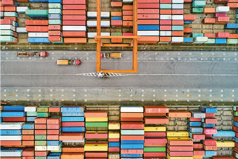 四川宜賓港依托物聯(lián)網(wǎng)、5G 通信、可視化、智能化等先進(jìn)信息技術(shù),將傳統(tǒng)碼頭升級(jí)改造成為智慧碼頭,全面提升港口智慧化、信息化作業(yè)水平。圖為集裝箱卡車在宜賓港集裝箱碼頭往來穿梭,有序作業(yè)。 求是圖片 莊歌爾/攝