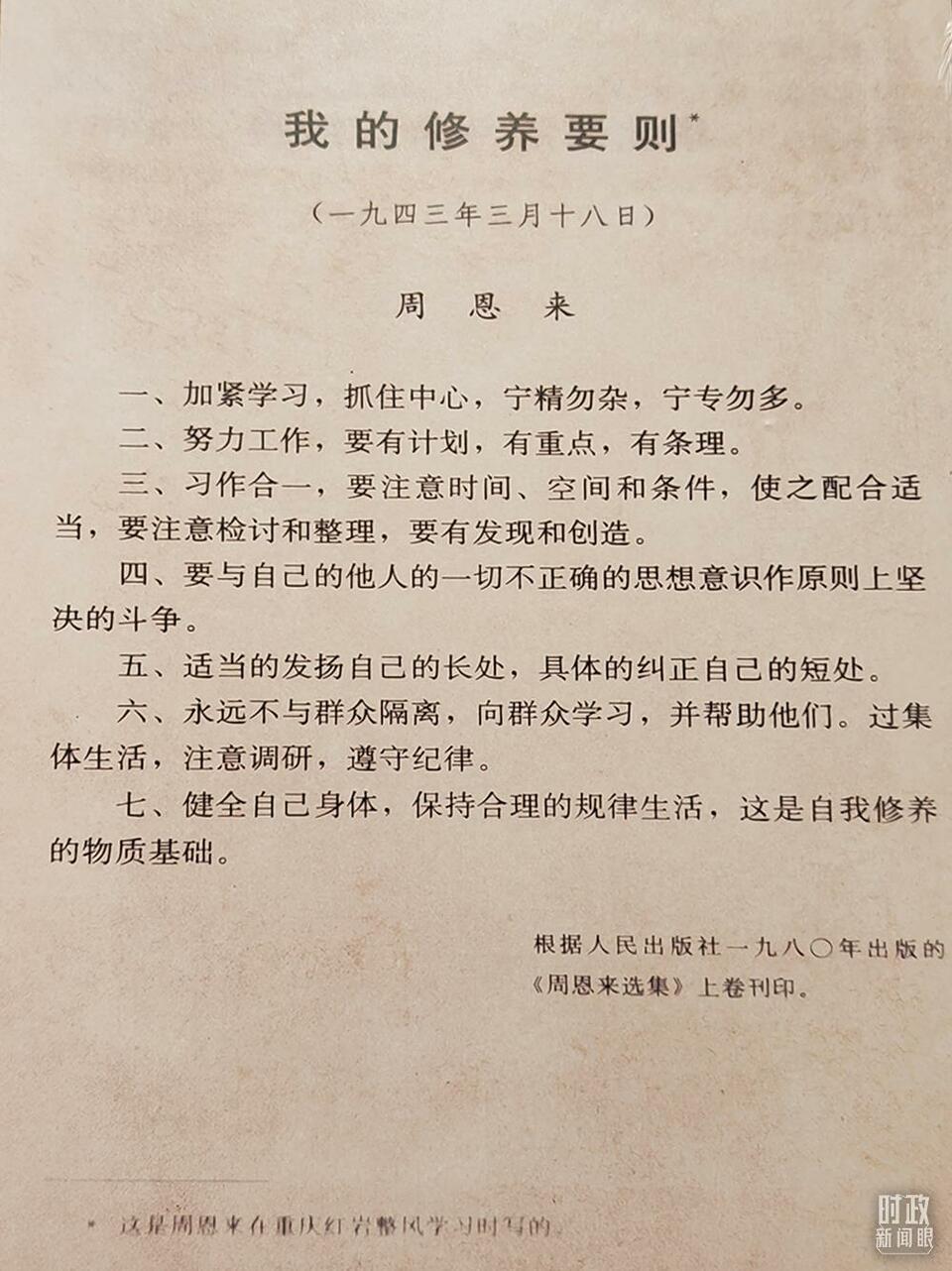 △周恩來所寫《我的修養(yǎng)要則》。(總臺央視記者彭漢明拍攝)