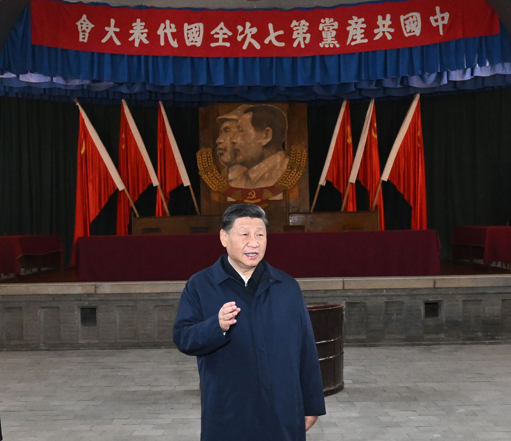 這是2021年4月21日拍攝的楊家?guī)X革命舊址中央大禮堂。新華社記者 張博文 攝
