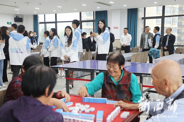 在韋曲街道崔家營(yíng)社區(qū),媒體團(tuán)在社區(qū)工作人員胡辛敏的帶領(lǐng)下走進(jìn)了一家特殊的愛心餐廳,一群老年人正“熱火朝天”地打著麻將?!奥閷⑹亲钍軞g迎的娛樂項(xiàng)目之一,為了鍛煉老年人的手指靈活度,我們專門購(gòu)買了‘手搓’麻將桌?!焙撩糁钢閷⒆雷澜莾H剩的紅漆向媒體團(tuán)介紹,愛心餐廳原本設(shè)立的初衷是解決社區(qū)老人吃飯“難”的問題,但卻漸漸發(fā)現(xiàn)許多老人只是“嘗鮮”,時(shí)間一久就不愿意到餐廳了。