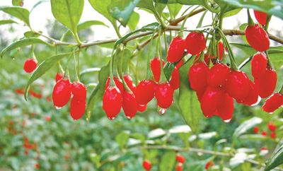 鮮紅的枸杞掛滿枝頭。資料圖片