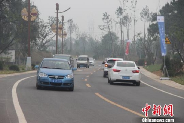 記者在沿黃觀光路韓城段看到,公路兩旁綠樹草坪蔥蔥,黃河在公路的一邊靜靜流淌,另一邊是干凈整潔的村子,來自不同地方的車輛穿梭在風(fēng)景如畫的公路上。