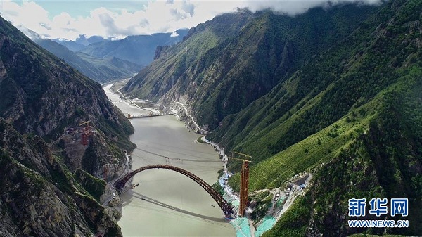 作為拉林鐵路重點標(biāo)志性工程,藏木特大橋由中國中鐵廣州局集團承建,大橋采用430米中承式鋼管混凝土拱,拱高112米,橋橫跨雅魯藏布江峽谷,水深66米,是首座一跨過雅魯藏布江的鐵路橋梁。