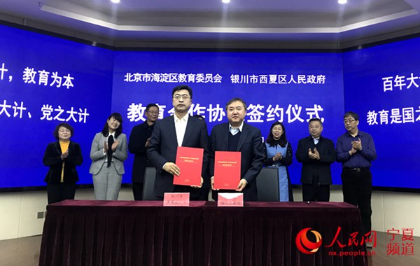 人民網(wǎng)銀川11月29日電 (閻夢婕)11月28日,京銀教育合作簽約儀式在銀川中關(guān)村創(chuàng)新創(chuàng)業(yè)中心舉行,北京市海淀區(qū)教委和銀川市西夏區(qū)人民政府簽署了教育合作協(xié)議;北京市中關(guān)村中學(xué)與銀川市中關(guān)村中學(xué)簽署了結(jié)對共建協(xié)議。