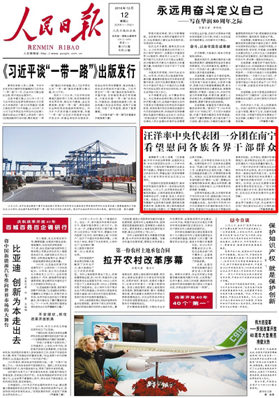 中共中央政治局常委、全國政協(xié)主席、中央代表團(tuán)團(tuán)長汪洋,11日率中央代表團(tuán)一分團(tuán)在南寧看望慰問各族各界干部群眾,帶著黨中央和習(xí)近平總書記的親切關(guān)懷,帶著全國人民的深情厚誼,與大家共同慶祝自治區(qū)成立60周年。