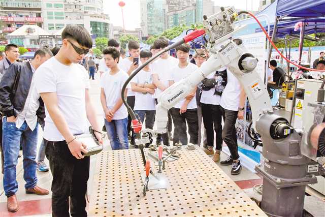巫山縣職業(yè)教育中心學(xué)生在演示機(jī)器人焊接技術(shù)。通訊員 王忠虎 攝