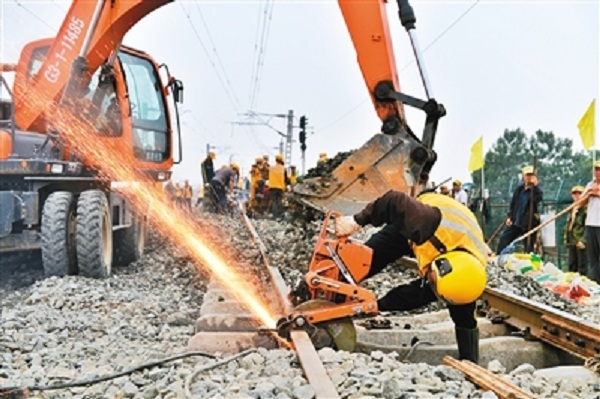 500余名施工人員正在緊張地進行站改作業(yè)(西安報業(yè)全媒體記者 翟小雪 攝)